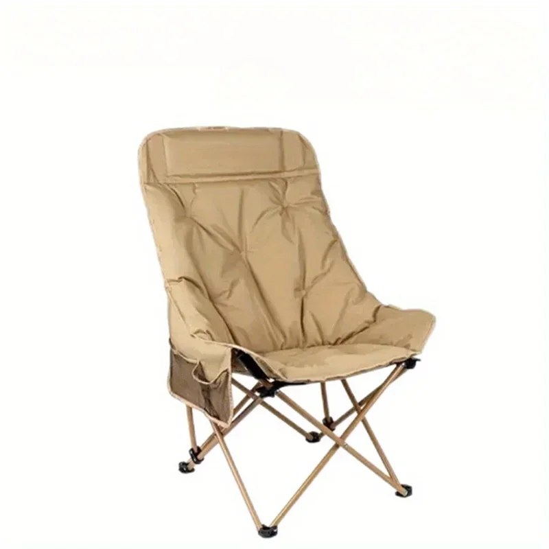 This high back moon camping chair offers comfortable and supportive seating for a variety of outdoor activities. Designed with a deep, rounded seat and a tall backrest, it provides a relaxed sitting position ideal for barbecues, picnics, camping trips, and beach outings. The sturdy frame and balanced design make it suitable for use at outdoor dining tables or around a campsite.